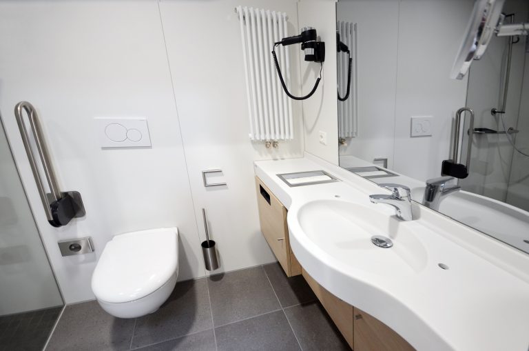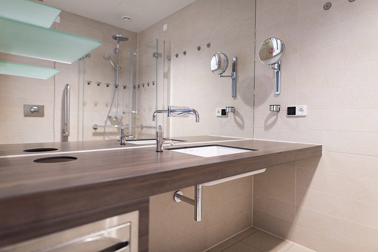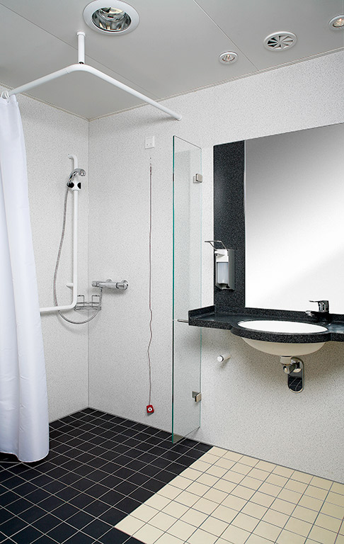 IBROBAU Sanitärzellen und Fertigbäder entsprechen den Anforderungen an Hygiene, Abdichtung, Standsicherheit, Schallschutz und Brandschutz. Wand- und Bodenanschlussfugen sind optional als Flexfugen auf Zementbasis möglich.