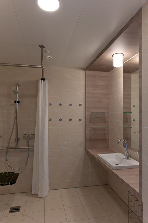 Decken- und Türelemente, Oberflächen, Ausstattung / Einrichtungen sind individuell erhältlich. Sanitäre Zu- und Abflussleitungen werden an die bauseits verwandten Materialien angepasst.